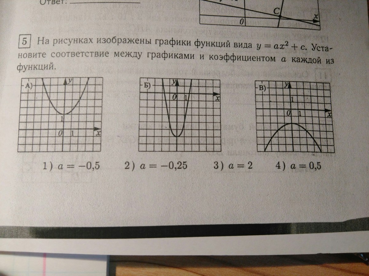 Установите соответствие между графиками и коэффициентом а каждой из функций