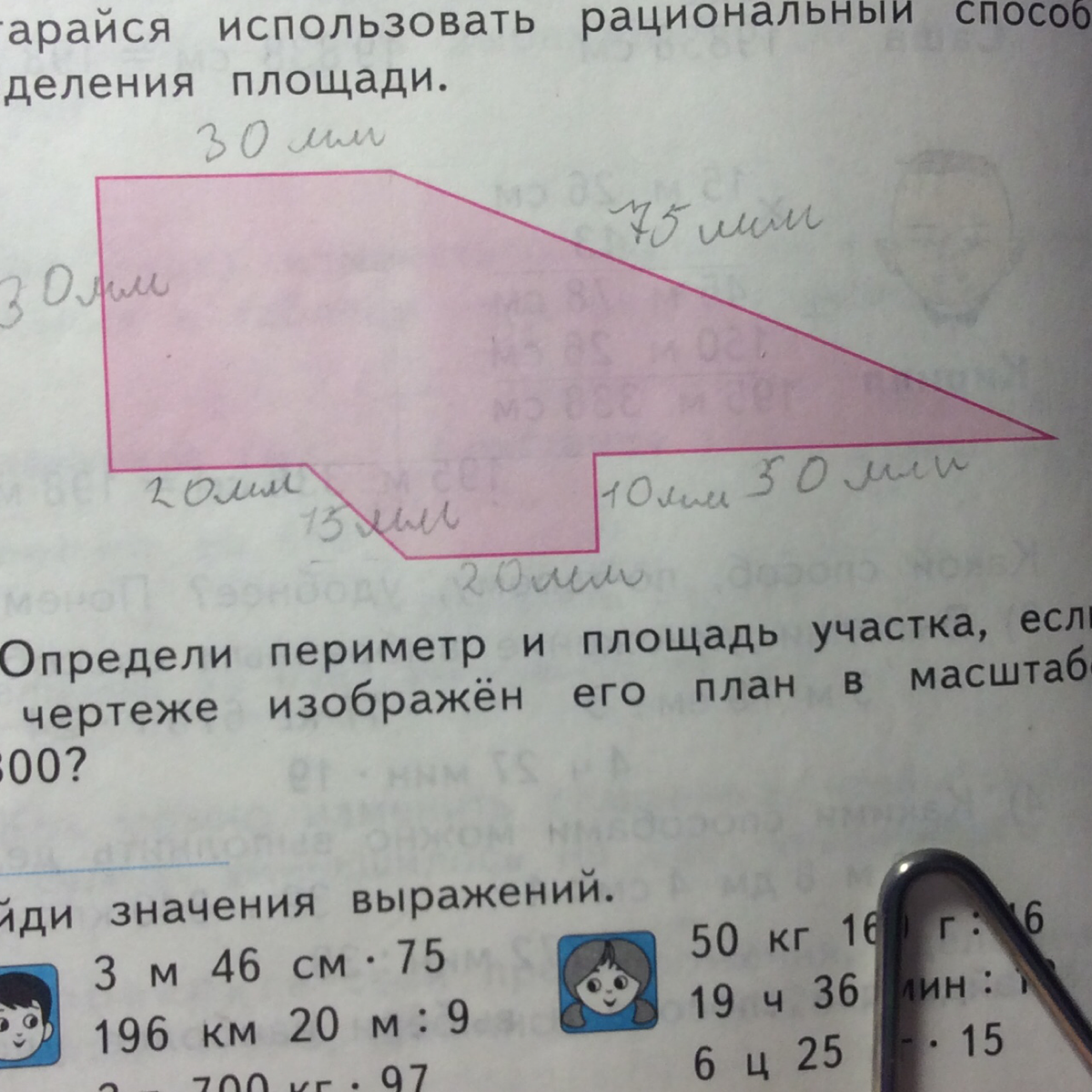 Опередил периметр и площадь участка если на чертеже изображен его план в масштабе 1:300 переведите в сантиметры!!!!!!!!!