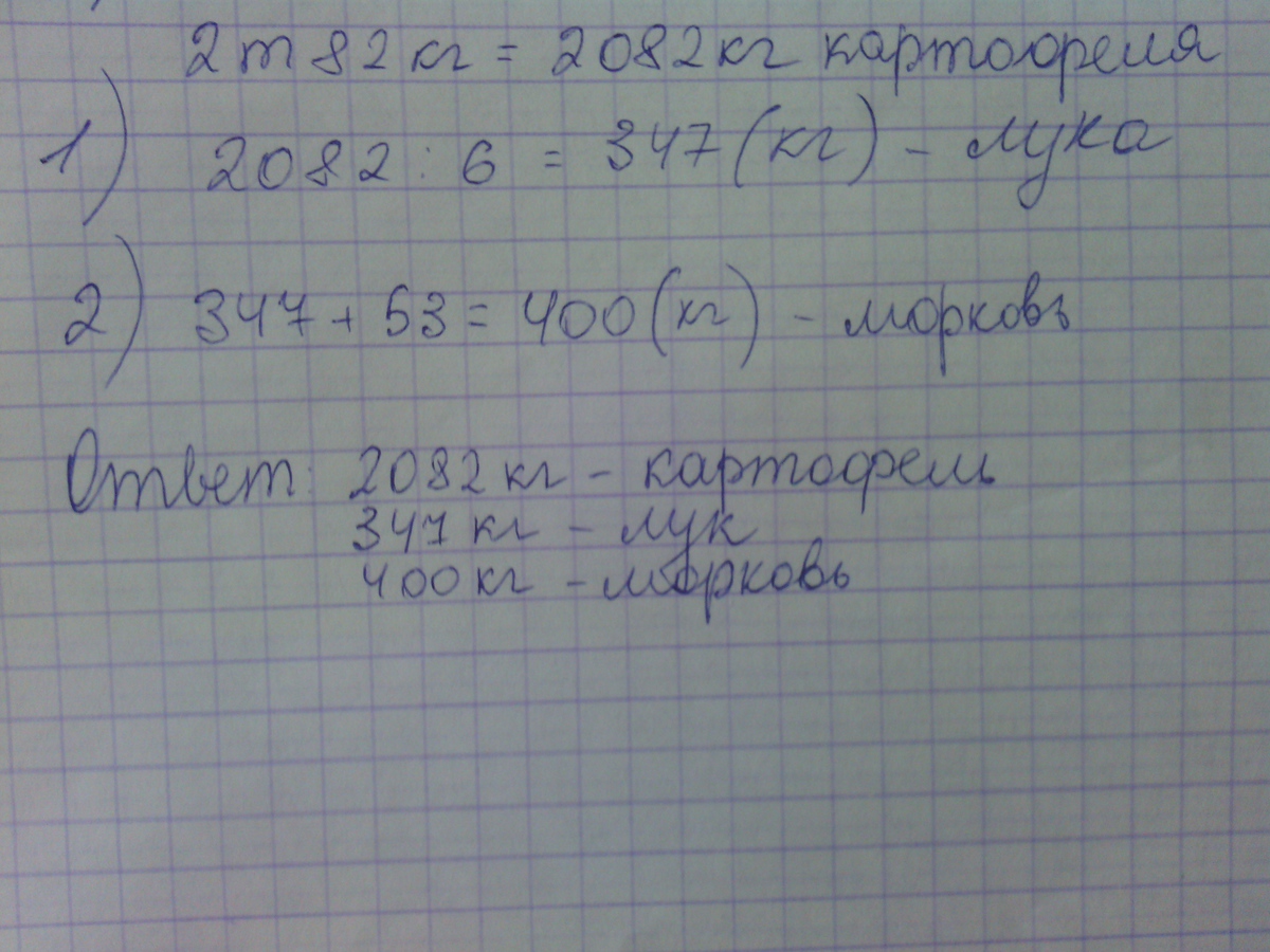 1 тонна = 1000 кг, значит 2 т = 2000 кг . 2000+82 = 2082 кг картофеля