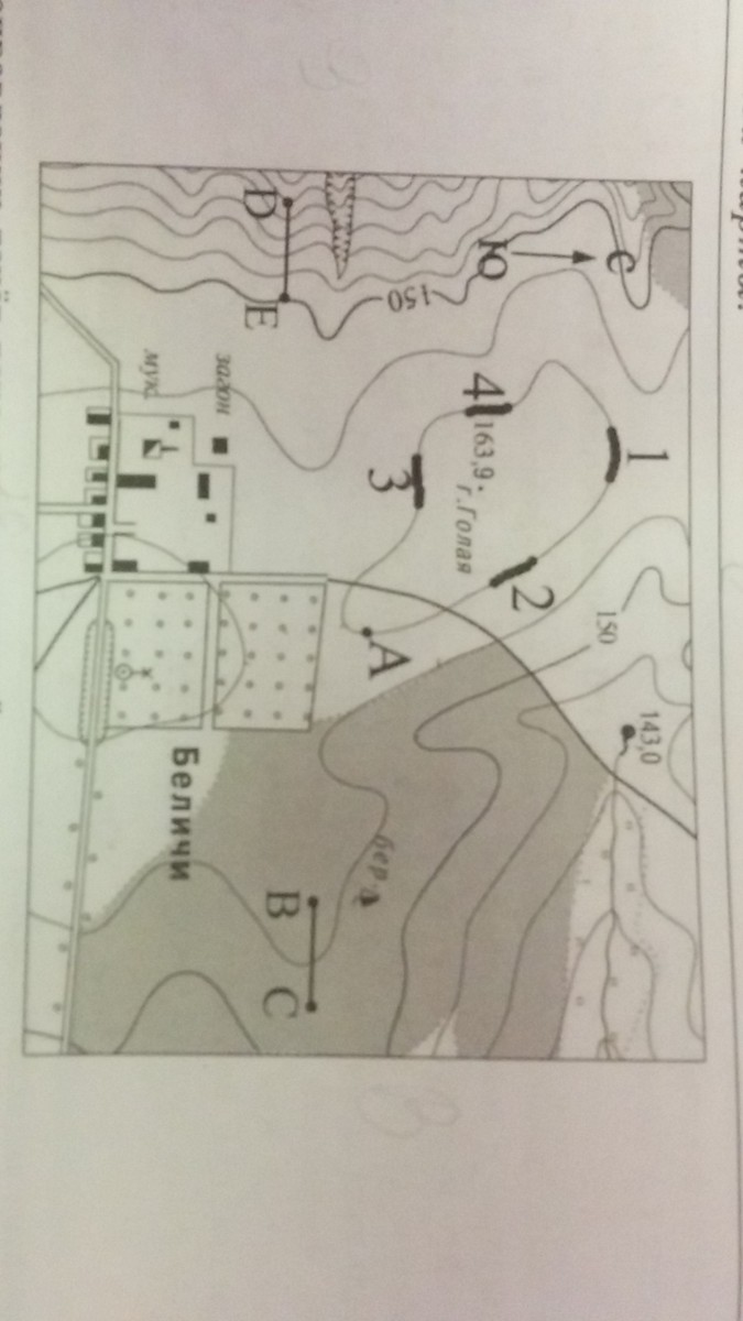 какой из участков склонов, обозначенных на карте цифрами, наиболее хорошо освещен ранним утром?