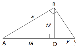 ТРЕУГОЛЬНИК ABC- ПРЯМОУГОЛЬНЫЙ, BD=12 СМ, AD=16 СМ. Найдите X И Y