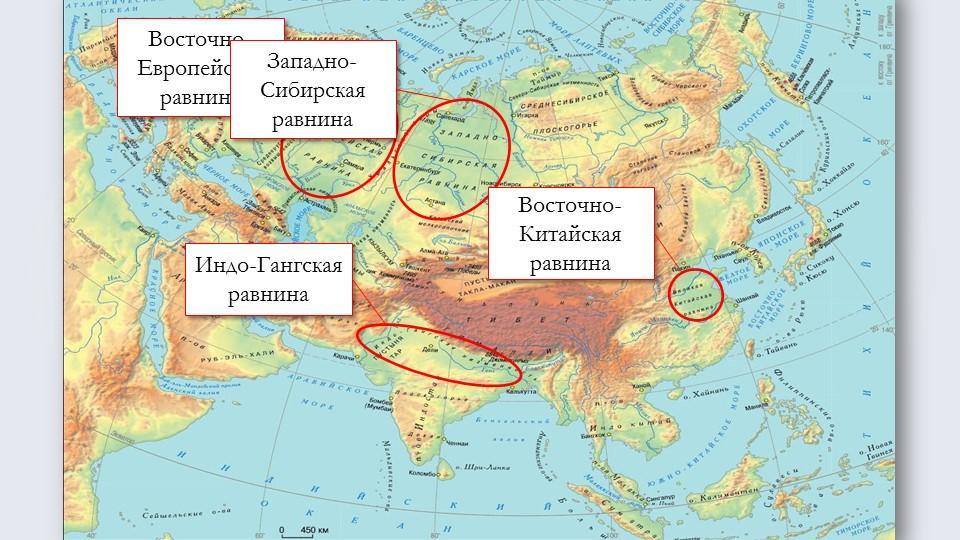 1)Найдите на карте крупнейшие равнины Евразии.Это Восточно-Европейская,Западно-Сибирская,Восточно-Китайская,Индо-Гангская равнины.
