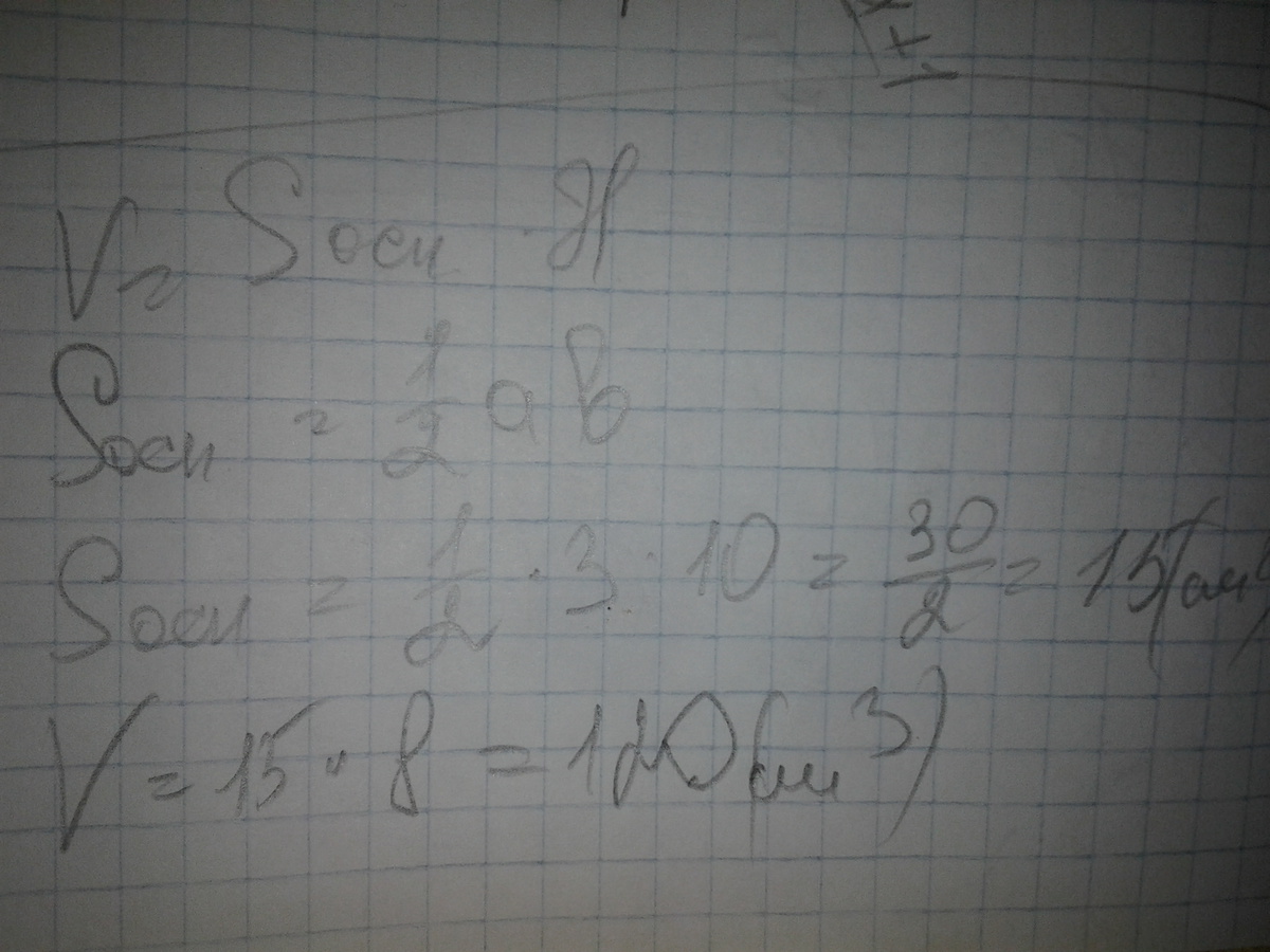 основа прямої трикутної призми прямокутний трикутник з катетами 3 см і 10 см. Висота призми дорівнює 8 см. Знайти об"єм призми