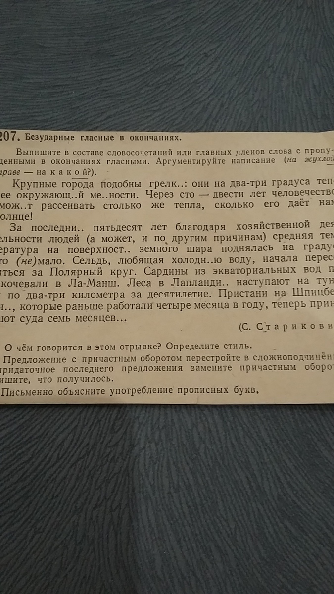 О чём говорится в этом отрывке?Определи стиль.Предложение с причастным оборотом перестройте в сложноподченёное,а придаточное последниго предложения замените причастным оборотом.Запишите что получилось.Срочно!!!