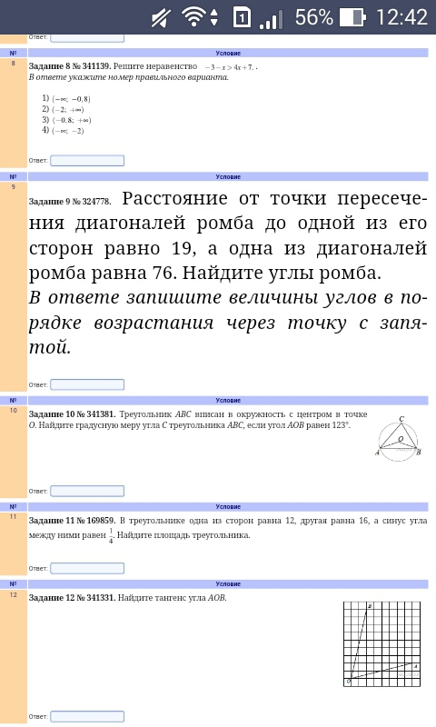 11) S=1/2*a*b*sinA=1/2*12*16*1/4=24. Ответ:24