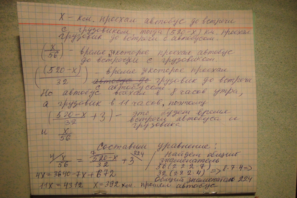 х=392 км. проехал автобус до встречи с грузовиком