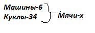 как сделать краткую запись к задаче: для детского сада купили 6 машин и 34 куклы, а мячей, сколько купили кукол и машин вместе. сколько мячей купили?