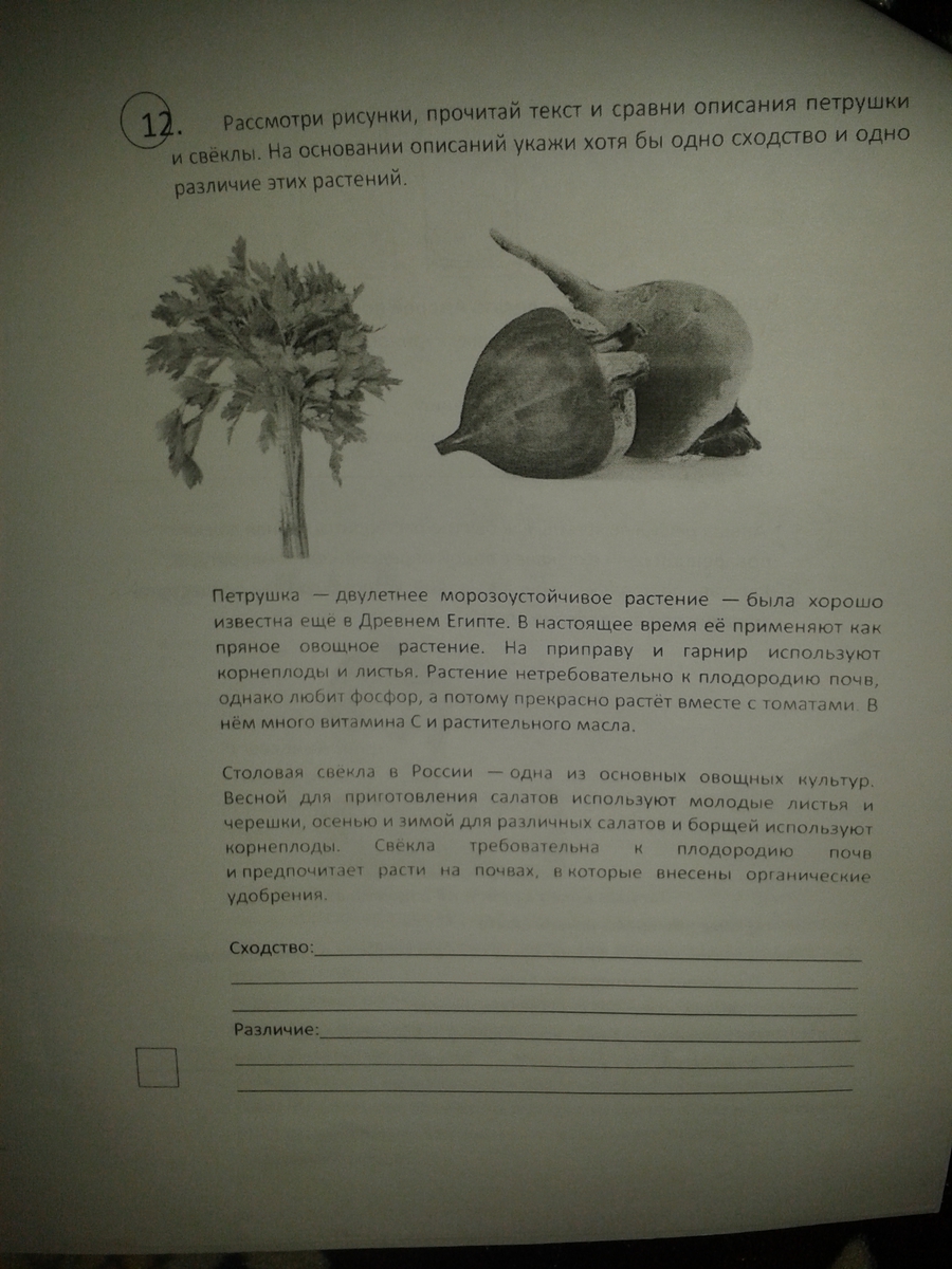 Различие:петрушка нетребовательна к плодородию почвы,а свекла требовательна к плодородию почвы.