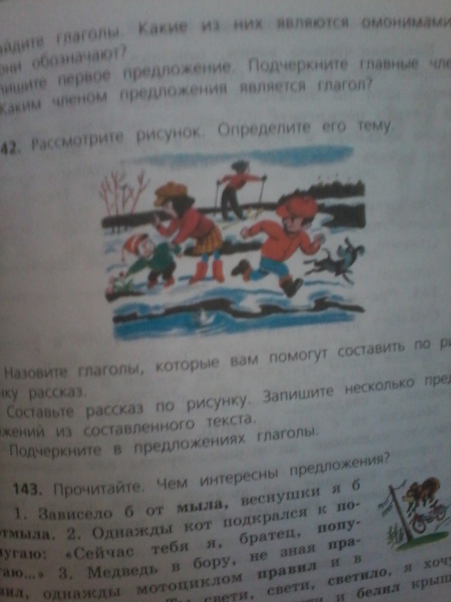 опорные глаголы: гулять, кататься, бегать, цвести, любоваться, рвать, грозить, вскрыться, пускать, плыть, свалиться, догонять, мешать.