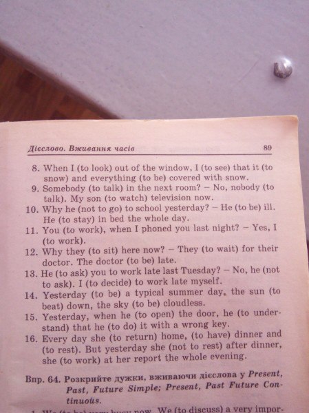 Розкрийте дужки, вживаючи дієслова в одному із часів ( Present simple, past simple, Present Continuous , Past continuous.