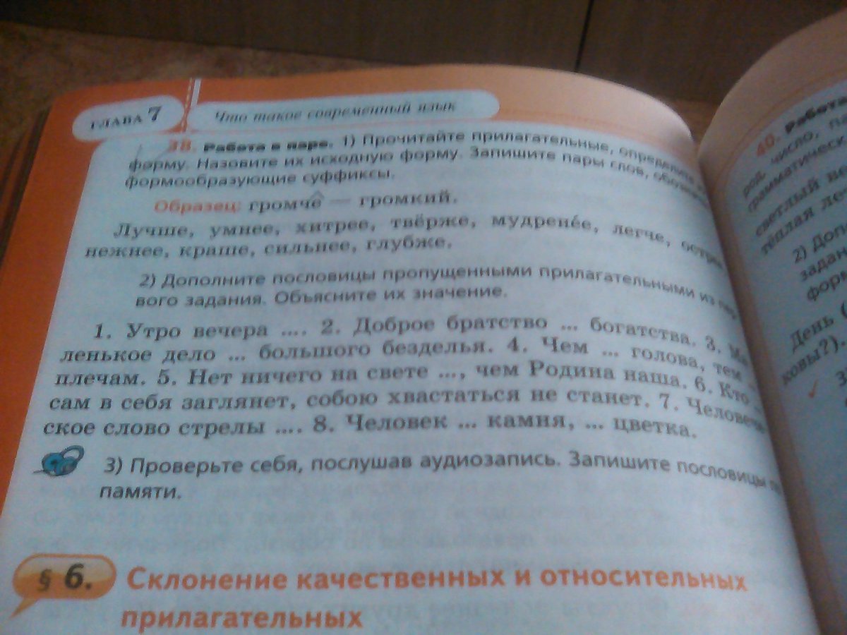 Утро вечера мудренее Доброе братство дороже богатства. 3.лучше 4.больше умнее 5.краше 7. острее 8.твёрже нежнее 6.глубже