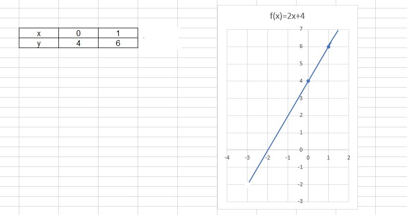 Одна точка нам дана: (0;4), нужно найти еще одну, подставив, для легкости вычисления, х=1, тогда у=2*1+4, у=6.