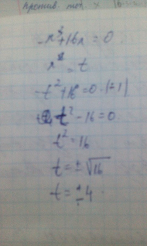 x(-x^2+16)=0 x=0 bkb -x^2 +16 =0 /:(-1)