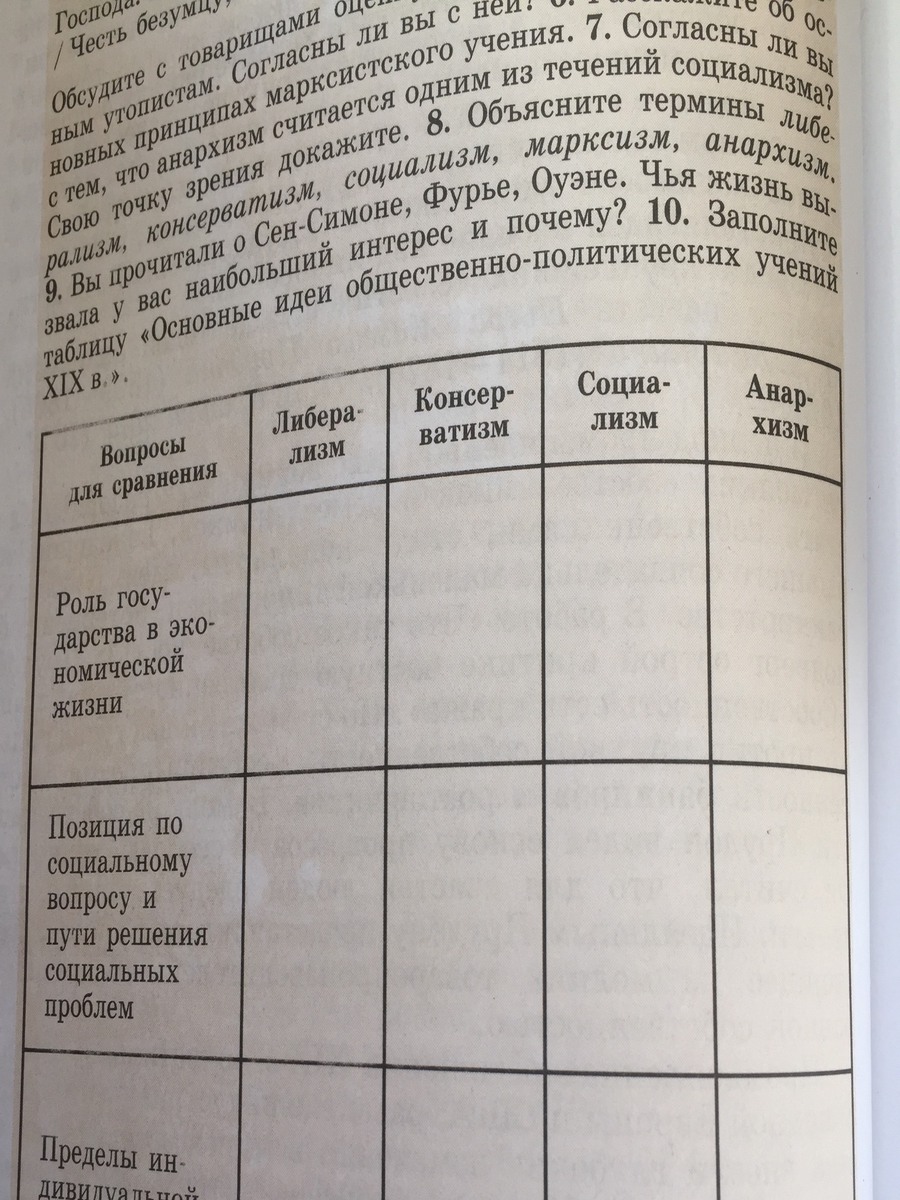 Заполните таблицу по параграфу "либералы,консерваторы и социалисты: каким должно быть общество и государство