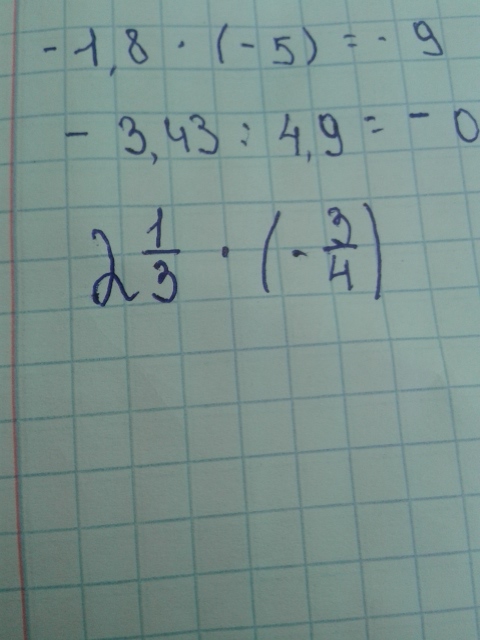 1)9равно1*9. 2)0,7равно-0,7. 3)дробь семь третьих *(-дробь три четвертых равно -дробь семь четвертыхравно - дробь одна целая три четвертых