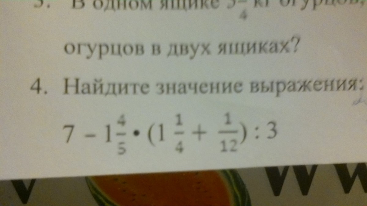 найдите значение выражения 7 - 1 4/5 * (1 1/4 + 1/12) : 3
