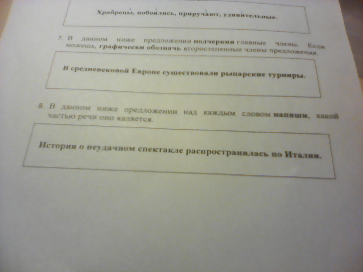 8.История(сущ) о(предлог) неудачном(прилагат) спектакле(сущ) распространилась(глагол) по(предлог) Италии(сущ).