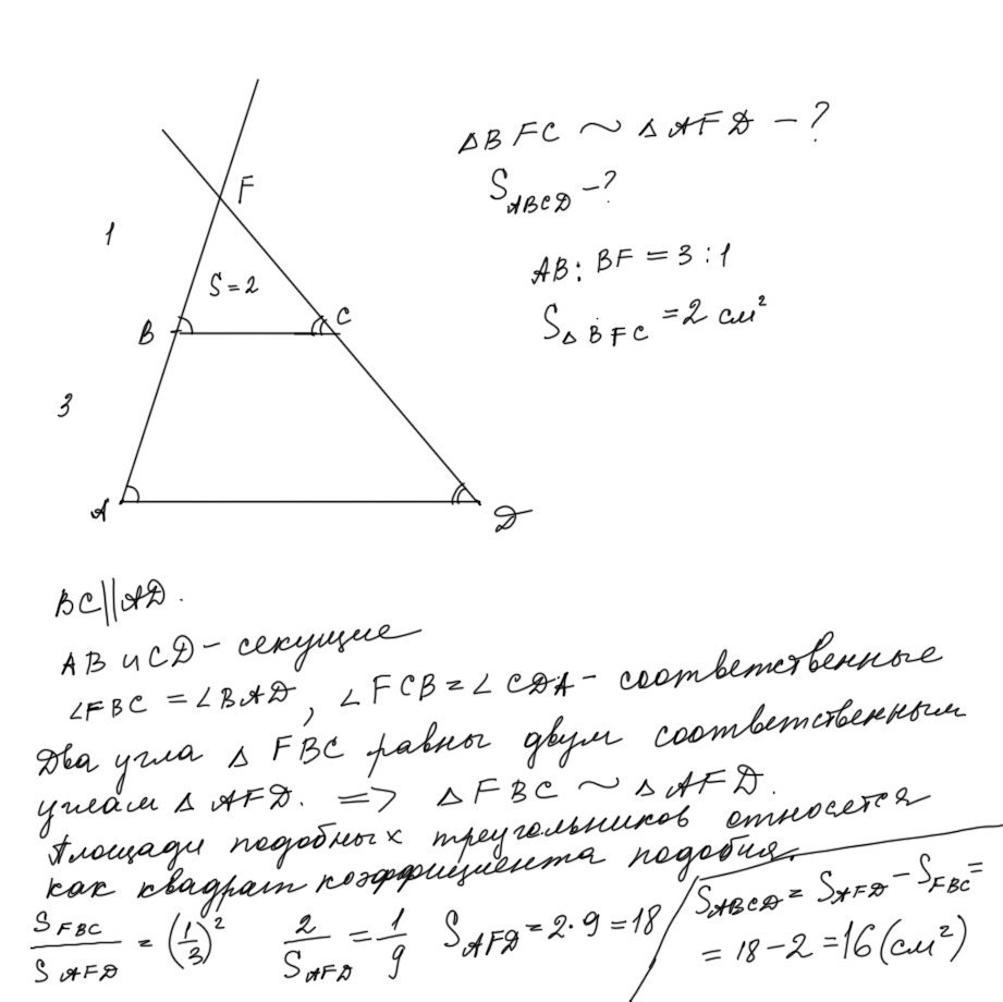 В трапеции ABCD продолжения боковых сторон AB и CD пересекаются в точке М, AD=2BC, F- середина AD. Докажите, что BMCF - параллелограмм.