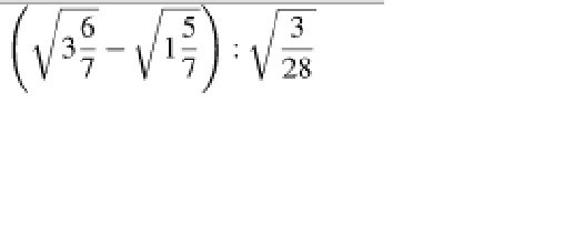Запишем все в виде неправильных дробей. Получим(sqrt - корень): (sqrt(27/7)- sqrt(12/7))/(sqrt(e/28))Получаем трехэтажную дробь. Делаем из нее обычную дробь. Получим (sqrt(27)-sqrt(12))*sqrt(28)/(sqrt(7)-sqrt(7))*sqrt(3) Там посчитаем и получим 2