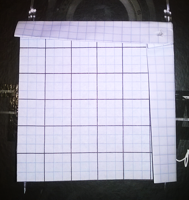 Для того чтобы снять все сомнения, просто проведём чистый, "незамутнённый логикой" эксперимент и убедимся в правильности приведённых рассуждений. Результаты эксперимента представлены на фотографиях. Первая – несогнутый квадратный лист 10x10 . Вторая – лист, согнутый до размеров 6x6. Третья – развёрнутый обратно лист с 25-тью дырками.