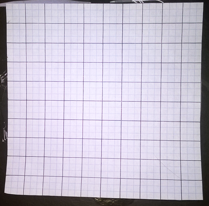 Разметим весь лист параллельными линиями с шагом 1 см в одном и другом перпендикулярных направлениях, начиная от края, так чтобы образовалось ровно 100 одинаковых квадратиков, каждый площадью в один квадратный сантиметр. Назовём их для удобства дальнейших рассуждений – «ячейками».