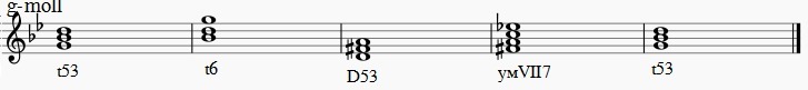 кто знает сольфеджио помогите пожалуйста! От звука соль построить цепочку Б3 вверх, Б6 вниз, Ч4 вверх, Б2 вниз. В тональность соль минор гармонический построить последовательность t53? t6? Д53, ум77, Т53