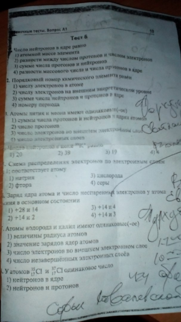 1) Натрия 2) фтора 3) кислорода 4) серы