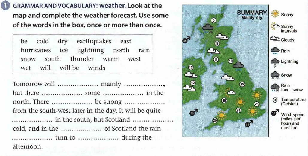 Tomorrow will be mainly dry, but there will be some rain in the north. There will be strong wind .... It will be quite warm in the south, but Scotland will be cold, and in the north of Scotland the rain will turn to snow.