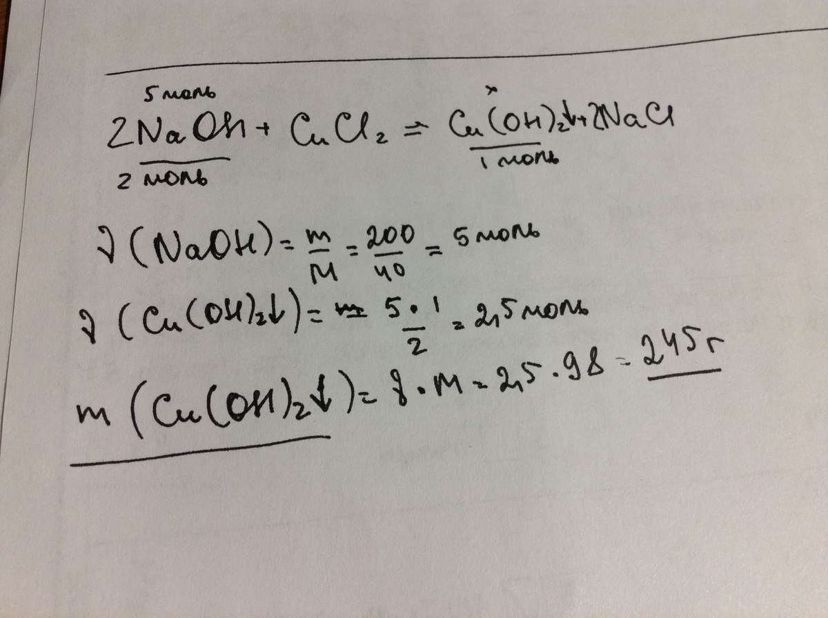 Найти массу осадка, полученного при взаимодействии 200г гидроксида натрия и хлорида меди.