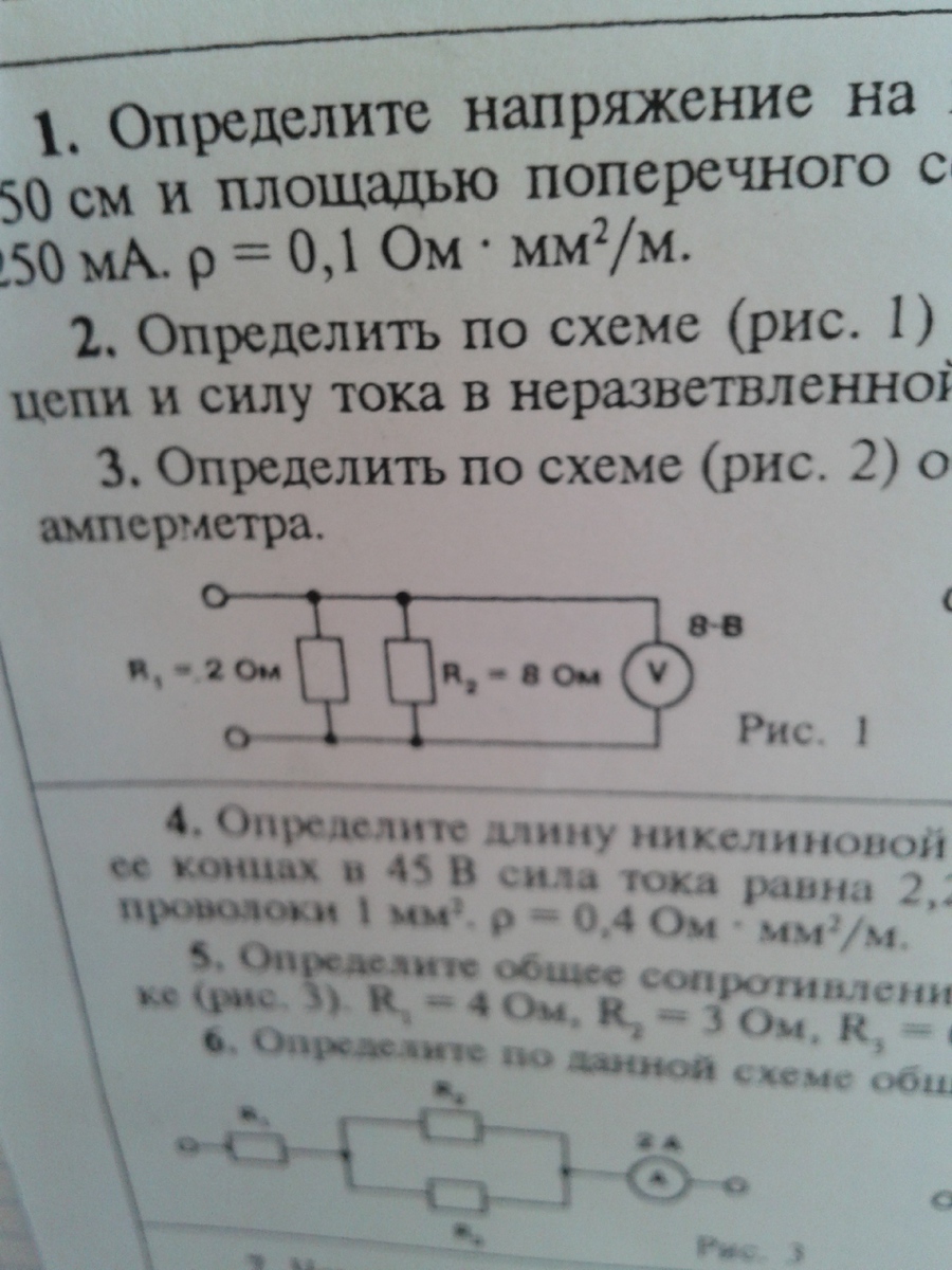 Определить по схема 1 общее сопротивление данного участка цепи и силу тока в неразветленной части цепи