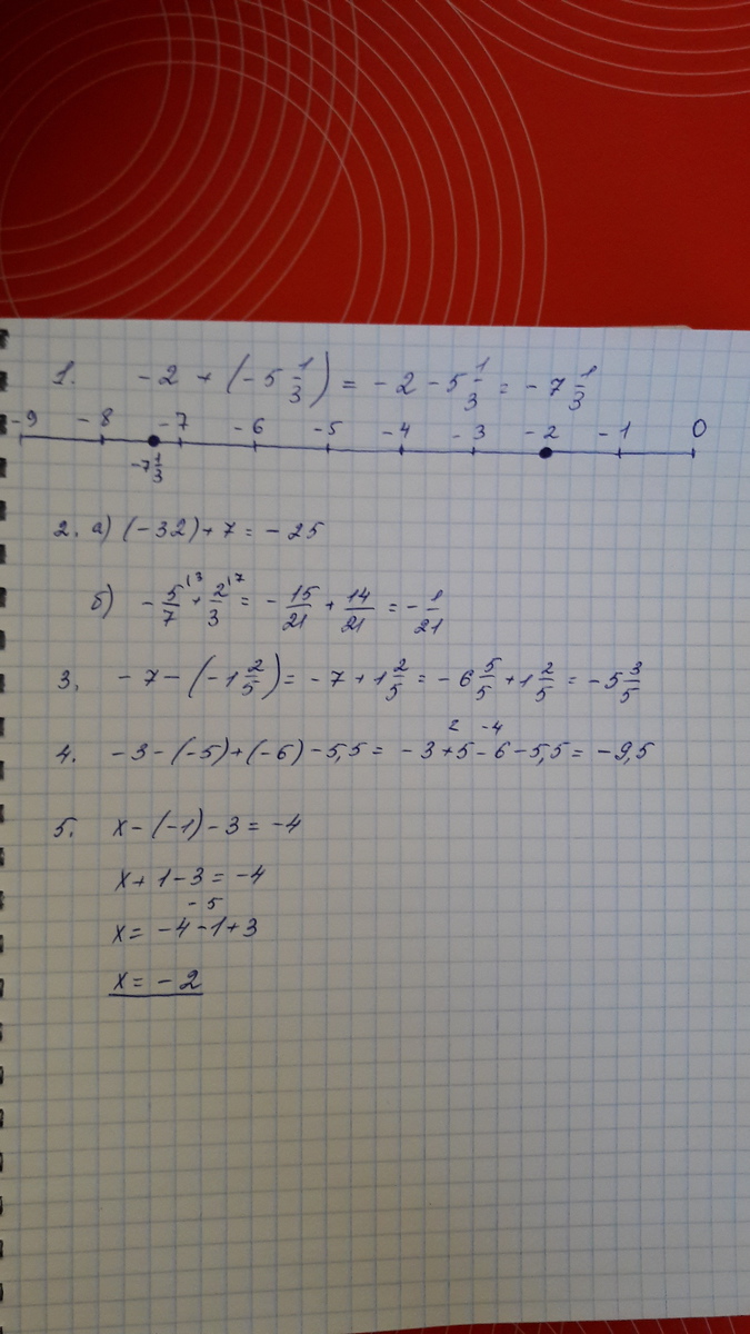 -7 1/3;-25;-1/21;-5 3/5;-9,5;Х=-2
