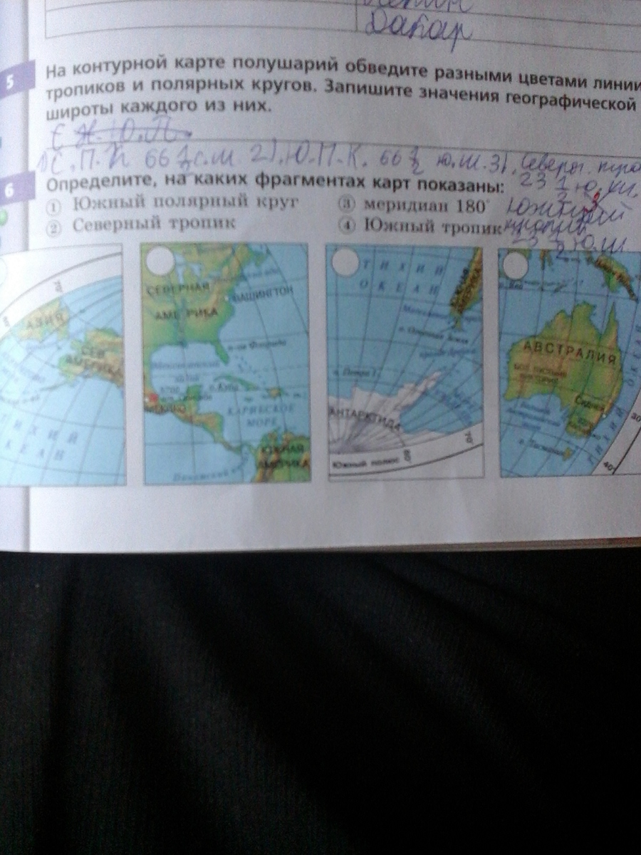 меридиан находится и в с. широтах и в ю. широтах, а с. и ю. тропик по названию видно