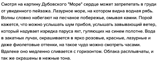 Сочинение с причастиями и деепричастиями по картине Дубовского "Море ". Какое настроение передает эта картина? Какие краски в ней присутствуют?