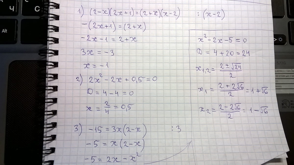 1.(2-x)(2x+1)= (2+x)(x-2)