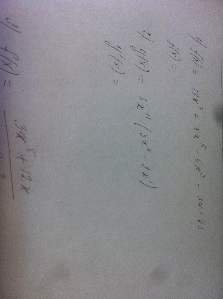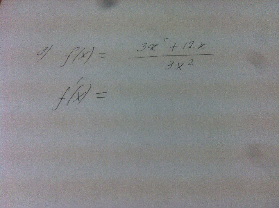 ![f`(x)=[(15x^4+12)*3x^2-6x(3x^5+12x)]/9x^4= f`(x)=[(15x^4+12)*3x^2-6x(3x^5+12x)]/9x^4=](https://tex.z-dn.net/?f=f%60%28x%29%3D%5B%2815x%5E4%2B12%29%2A3x%5E2-6x%283x%5E5%2B12x%29%5D%2F9x%5E4%3D)