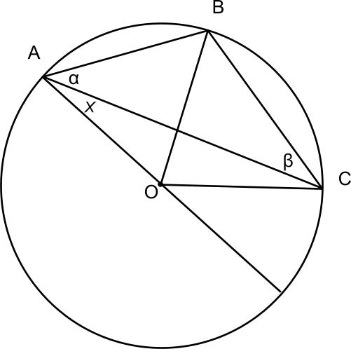 Треугольники АОВ, АОС и ОВС - равнобедренные (пара сторон в каждом - радиус окружности, следовательно, углы при основаниях АВ, АСи ВС равны)