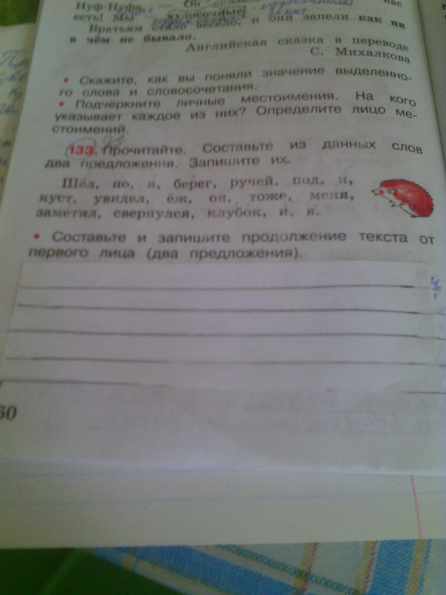 я шёл по берегу ручья и увидел под кустом ежа. он тоже меня заметил и свернулся в клубок.