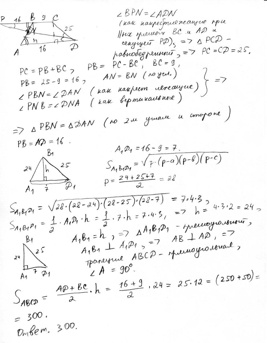 боковые стороны ab и ct трапеции abct равны соответственно 24 и 25, а основание bc равно 9. биссектриса угла adc проходит через середину стороны ab.