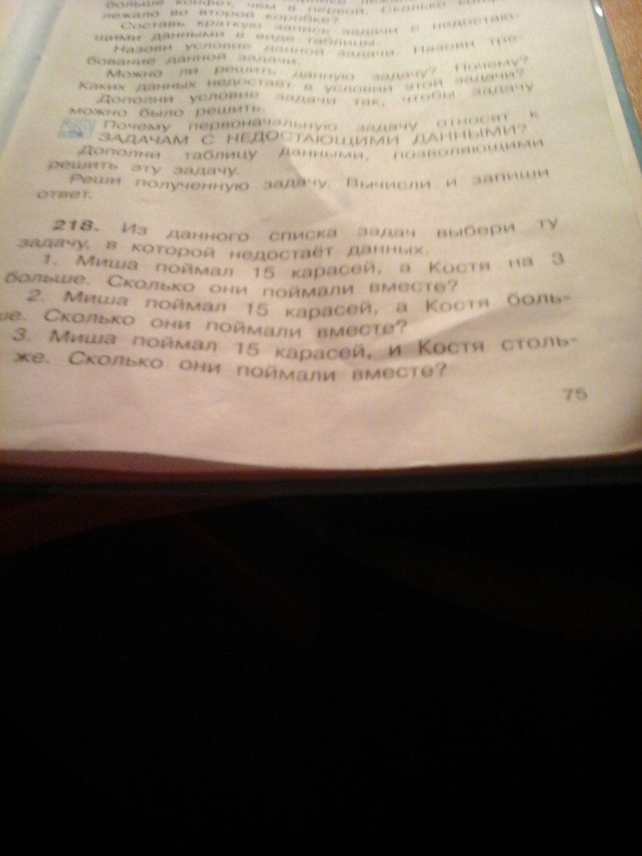 Во второй задаче не указано какое число рыбы поймал Костя, и не указано сколько всего поймали рыбы ребята.