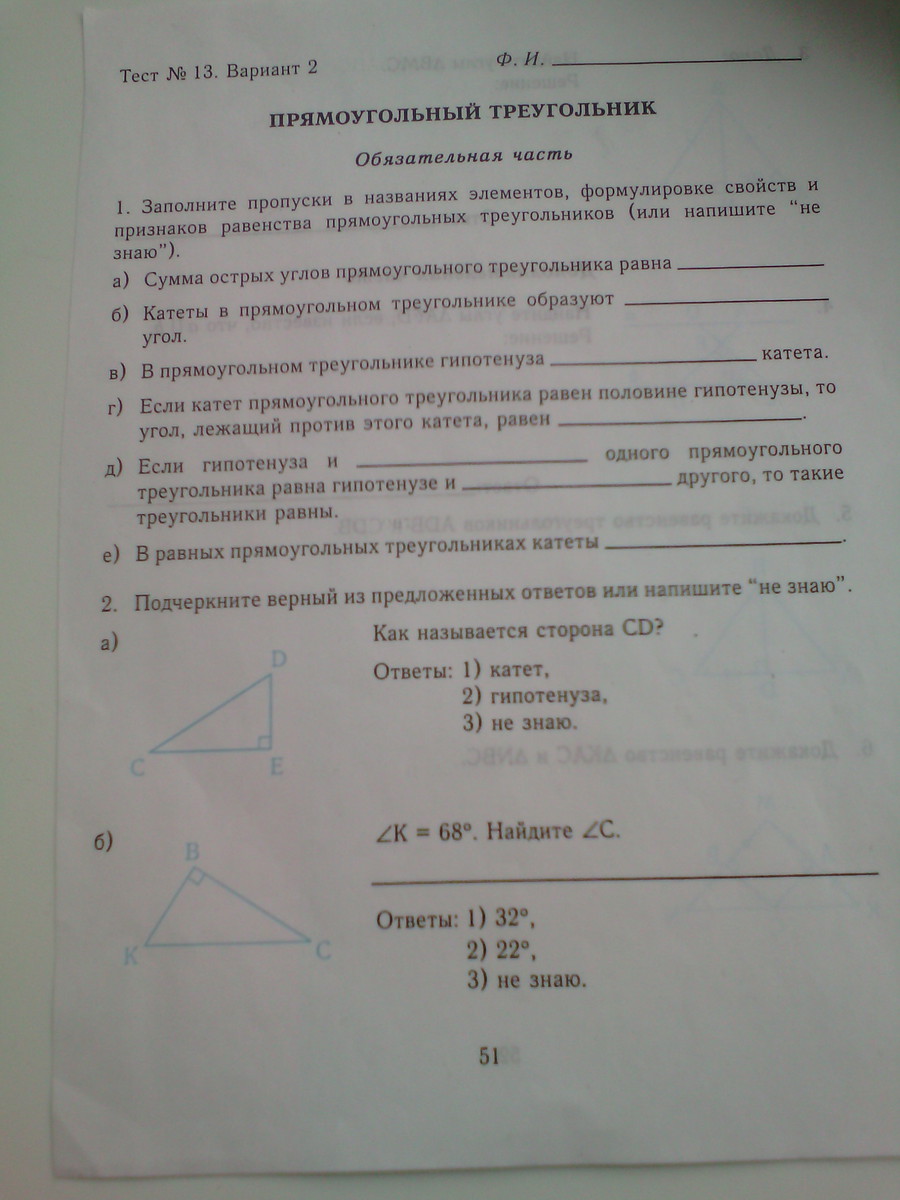 д)катет, либо острый угол