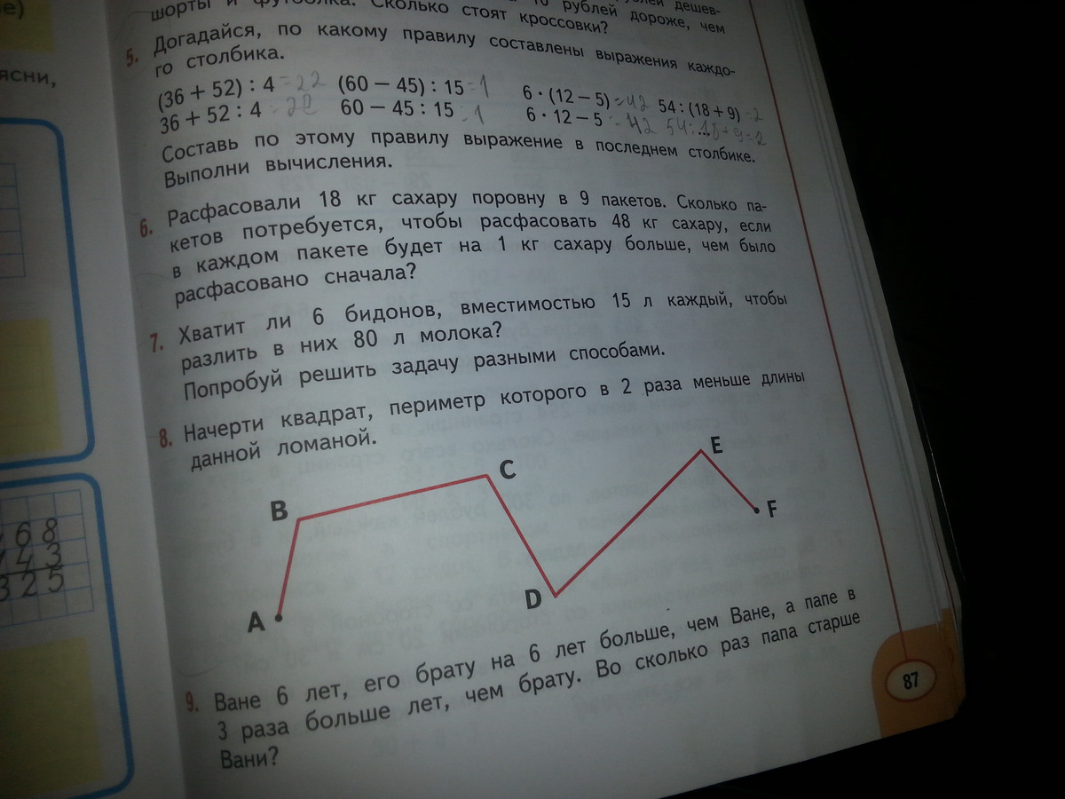 парень, чтоб решить 8 надо узнать сколько см. вся эта полоска. а потом поделить на четыре. а над 5 щяз подумаю
