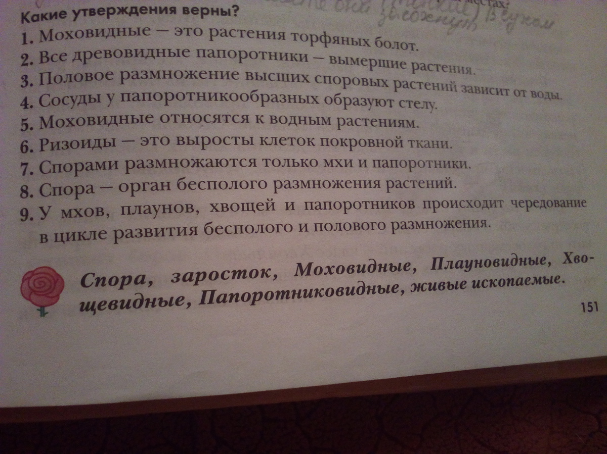 природы. Растения нужно изучать, чтобы пользоваться их дарами. Общий внешний вид растений называют жизненной формой. Лекарственные растения - те, которые человек выращивает для приготовления лекарств. Все культурные и дикорастущие растения - богатство нашей планеты. Все растения разделяются на семенные и споровые. Растения, размножающиеся спорами, называют споровыми. Низшие растения - это водоросли. Высшие растения - это цветковые растения. Обмен веществ происходит у всех организмов. На Земле имеются четыре среды жизни. Одно и тоже растение может жить в любой среде жизни. Водоросли обитают только в водной среде. Растения способны жить лишь в той среде, к условиям которой они приспособлены.