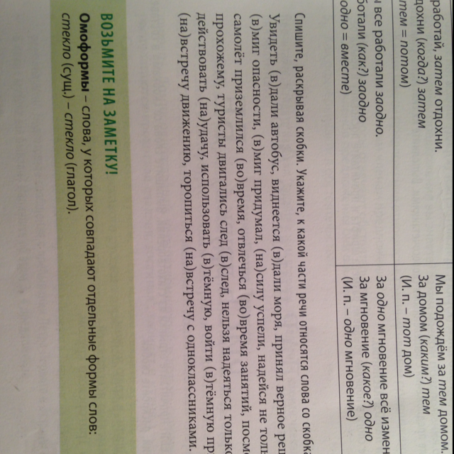 увидеть в дали (сущ) автобус , виднеется в дали (сущ) моря принял верное решение в миг (сущ) опасности , в миг (сущ) придумал , на силу (сущ) успели , надейся самолёт приземлится вовремя ( нареч ), отвлечься во время (сущ) занятий ,
