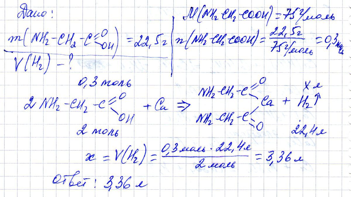 какой объем водорода (н.у) может выделится при взаимодействии кальция с 22,5 г аминоуксусной кислоты