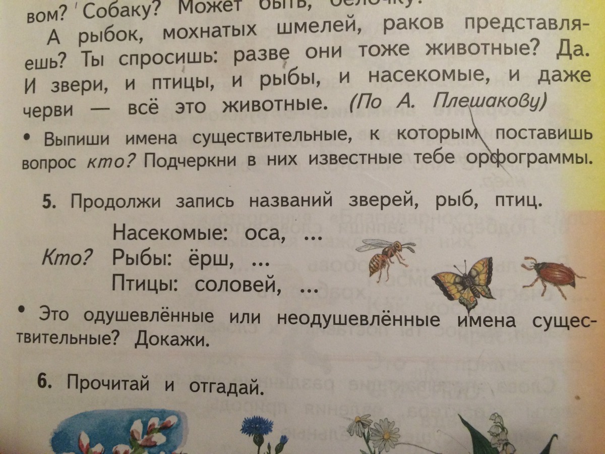 Насекомые оса,пчела Рыбы ёрш,карась Птицы соловей,дрозд одушевлённые Они могут 1. дышать 2.двигаться