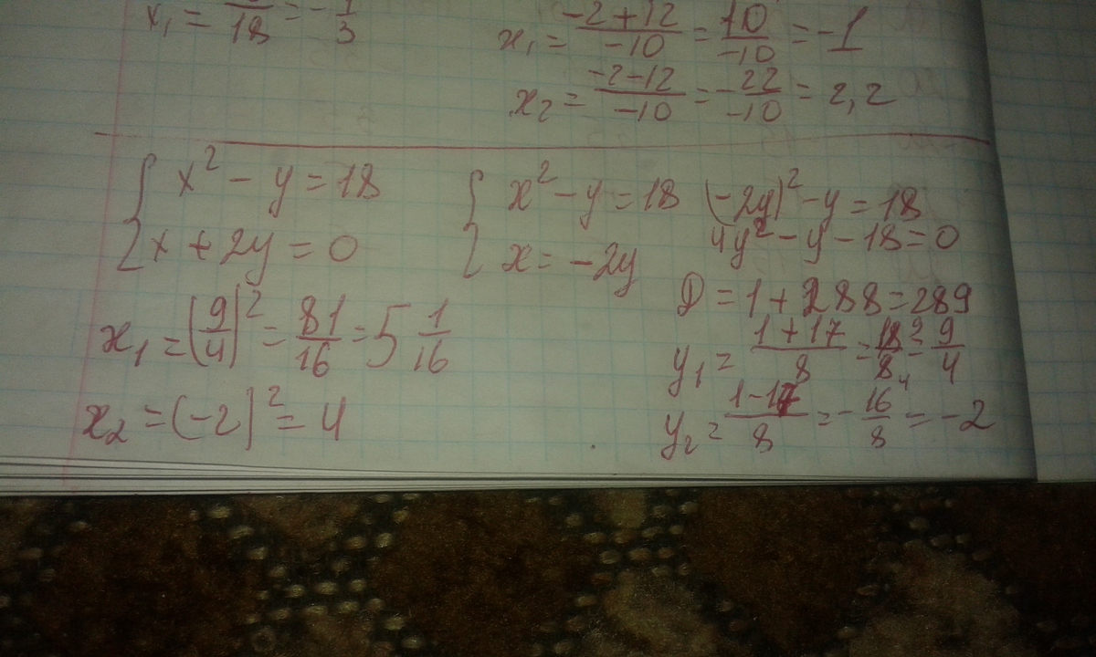 система х²-у=18; х+2у=0