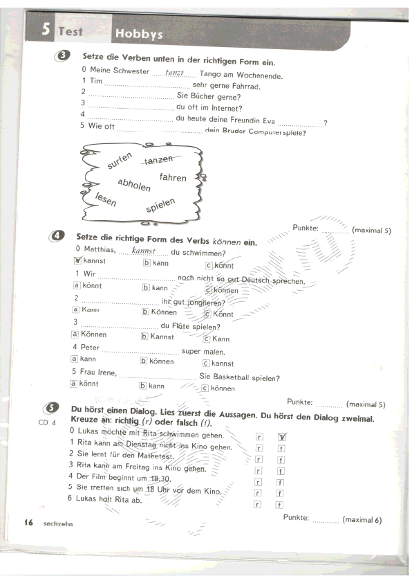 #1 1.fährt 2.lesen или liest 3.fährst, abholen 4.du surfst 5.spielt #2 1.können 2.könnt 3.kannst 4.kann 5.könnt