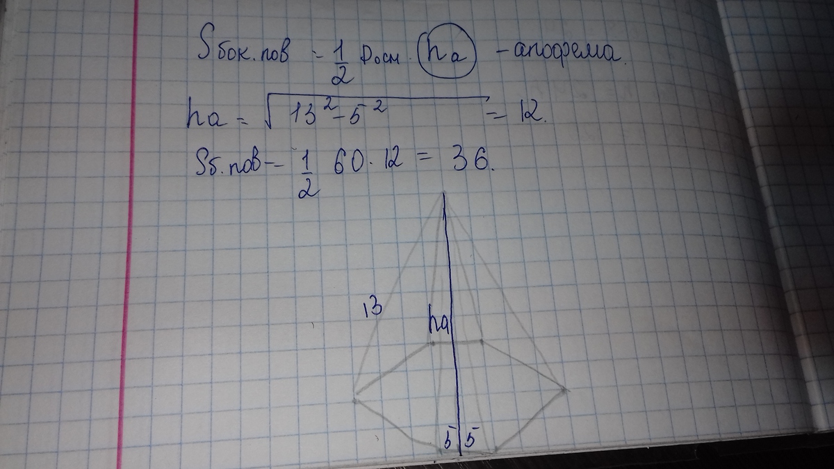 Площадь боковой поверхности правильной пирамиды равна перимерт основания умножить на высоту боковой грани и все разделить на 2.