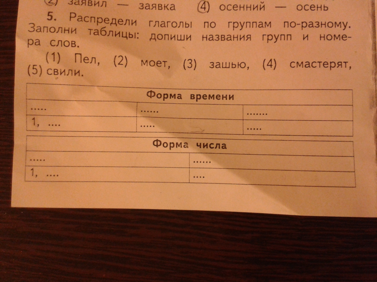 прошедшее время (1,5) настоящее время (2) будущее время (3,4)