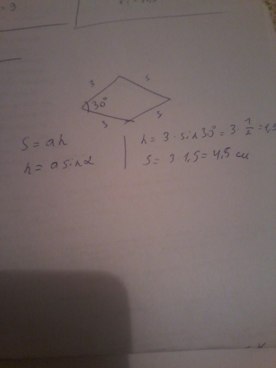 Сторона квадрата равна стороне ромба, а острый угол ромба равен 30 °. Найдите отношение площади ромба к площади квадрата.